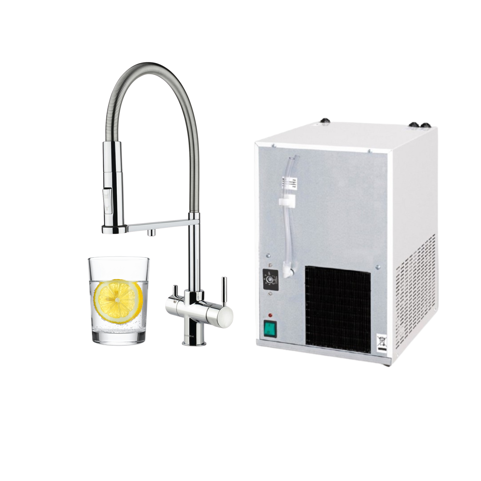 System podkranowy podaje wodę zimną oraz gazowaną. Bateria wielofunkcyjna z możliwością korzystania z wody bieżącej i filtrowanej. Zastępuje standardową baterię kuchenną.