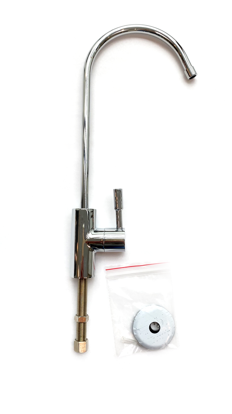 Wylewka (kranik) do nowoczesnego systemu przygotowania wody wodociągowej do picia składający się z wylewki jednofunkcyjnej, (części nablatowej) oraz filtru montowanego pod kranem (część podblatowa).